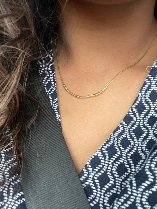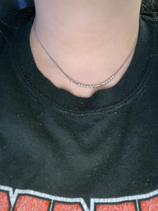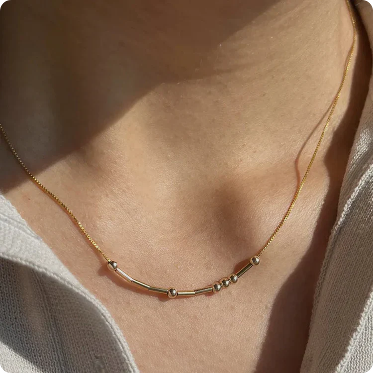 Teilen Sie eine Botschaft, die nur Sie beide verstehen. Diese zeitlose Halskette verleiht Ihren Worten etwas zutiefst Persönliches und Bedeutungsvolles. Ein wunderschönes Geschenk, das leise aus dem Herzen spricht.