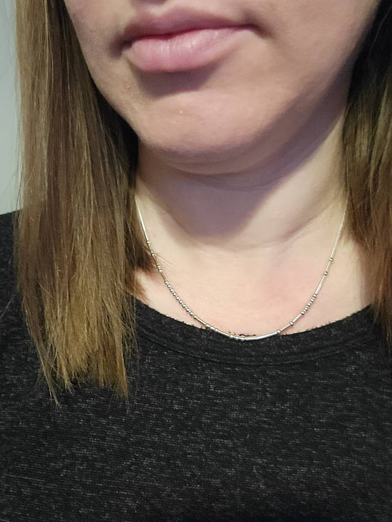 Die Kette verfügt über einen Schiebeverschluss, mit dem Sie sie auf die gewünschte Größe einstellen und um Ihren Hals befestigen können.